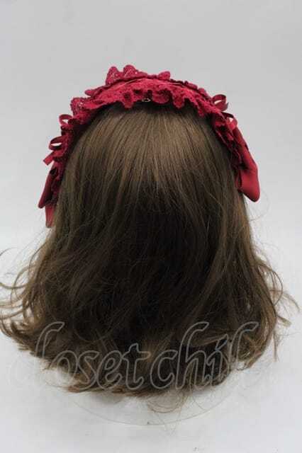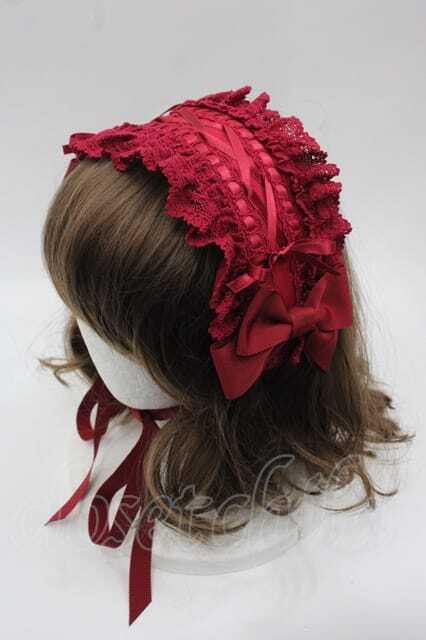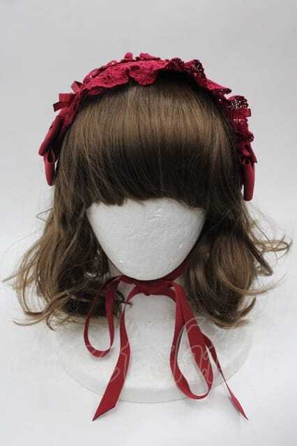 BABY,THE STARS SHINE BRIGHT / はしごレースのスピンドールヘッドドレス(バーバリー) 赤 I-25-10-04-111-BA-AC-SA-ZI