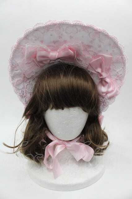 LOLITAその他(お買取対象外) / リボンレースボンネット 白Xピンク I-25-10-04-115-LO-AC-SA-ZI