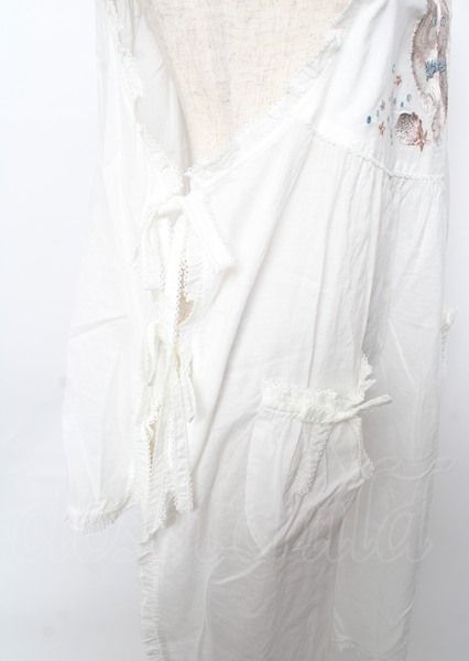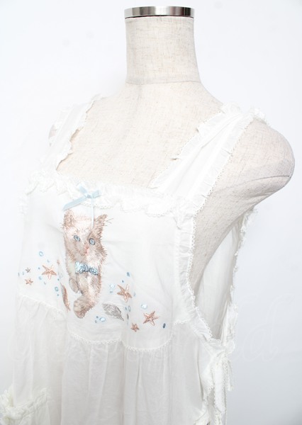 PINK HOUSE / さざ波とねこ刺繍ローンタブリエ F 白 Y-25-10-06-092-LO-TO-SZ-ZY