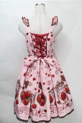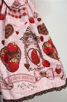 BABY,THE STARS SHINE BRIGHT / Strawberry Loves Chocolate柄エプロンフリルジャンパースカート・カチューシャセット ピンク S-25-10-06-009-BA-OP-AS-ZS
