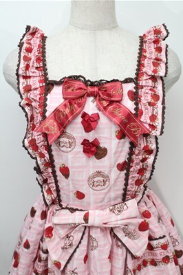 BABY,THE STARS SHINE BRIGHT / Strawberry Loves Chocolate柄エプロンフリルジャンパースカート・カチューシャセット ピンク S-25-10-06-009-BA-OP-AS-ZS [2100020000032141-S-25-10-06-009-BA-OP-AS-ZS]