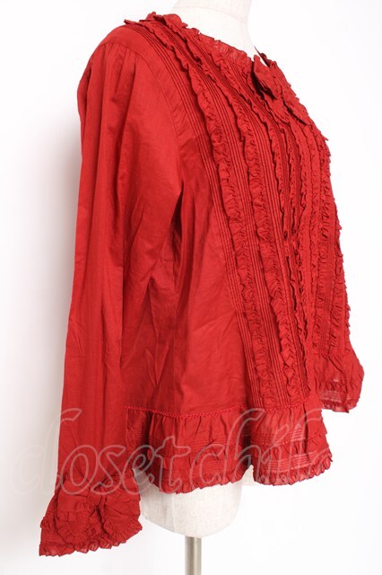 PINK HOUSE / フリルいっぱいローンブラウス F 赤 Y-25-12-20-042-LO-BL-SZ-ZY