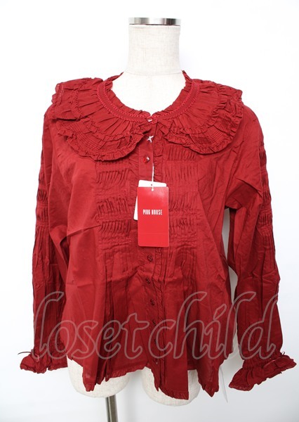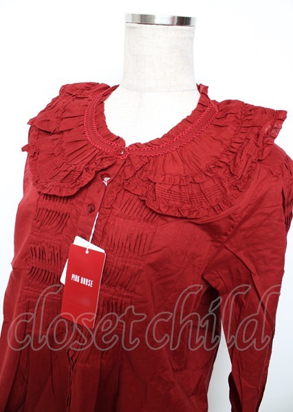 PINK HOUSE / リボンブローチ付きローンブラウス F 赤 Y-25-10-07-010-LO-BL-SZ-ZY