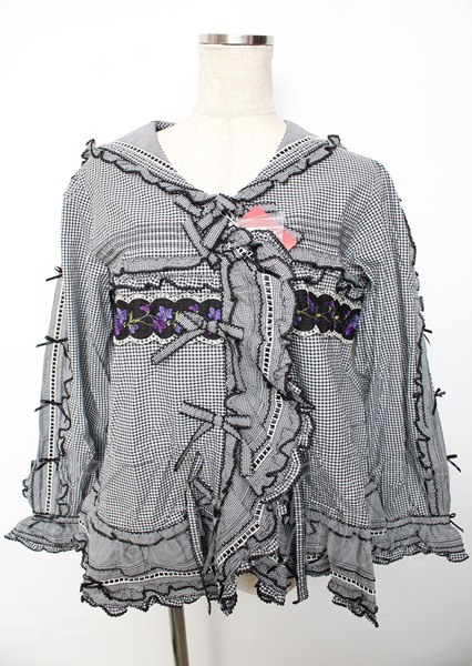 PINK HOUSE / バイオレットレース使いセーラーカラーブラウス F 黒 Y-25-10-07-030-LO-BL-SZ-ZY