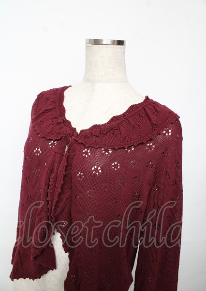 PINK HOUSE / 透かし編みボレロ風カーディガン F ボルドー Y-25-10-07-034-LO-TO-SZ-ZY [2100070000049297-Y-25-10-07-034-LO-TO-SZ-ZY]