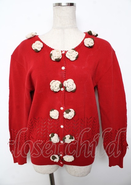 PINK HOUSE / カメリアモチーフニットカーディガン F 赤 Y-25-10-07-037-LO-TO-SZ-ZY [2100070000049227-Y-25-10-07-037-LO-TO-SZ-ZY]