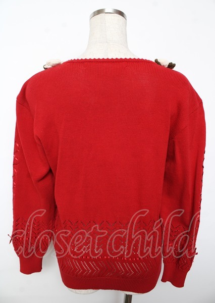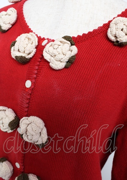 PINK HOUSE / カメリアモチーフニットカーディガン F 赤 Y-25-10-07-037-LO-TO-SZ-ZY