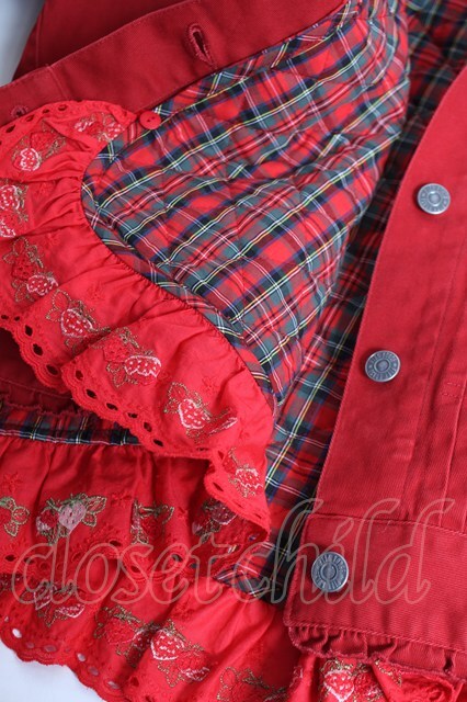 PINK HOUSE / タータンチェックライナーベスト付きストレッチデニムジャケット F 赤 Y-25-12-20-055-LO-JA-SZ-ZY