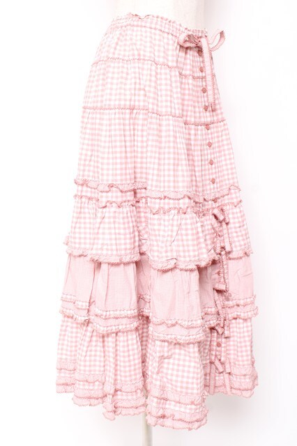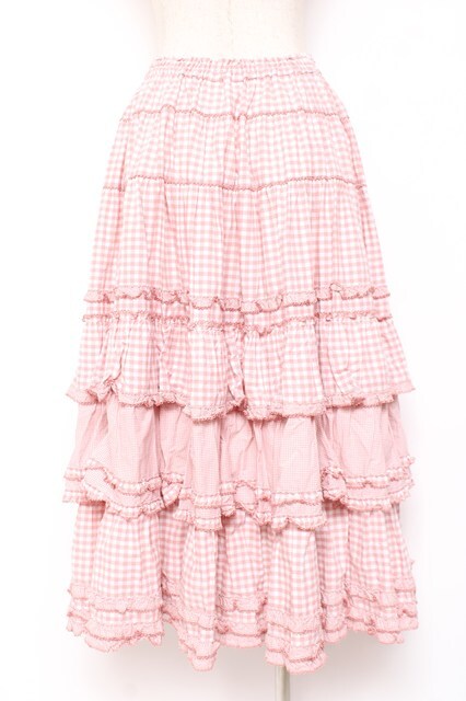 PINK HOUSE / ギンガムチェックパッチワークフリルスカート F ピンク Y-25-12-20-095-LO-SK-SZ-ZY