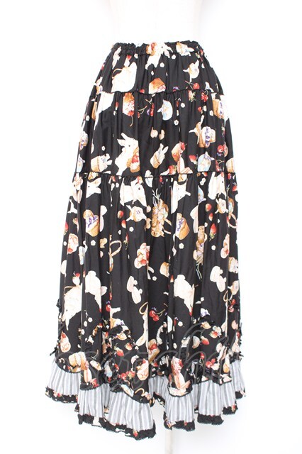 PINK HOUSE / スイーツスプリングバニープリントパッチワークスカート F 黒 Y-25-12-20-111-LO-OP-SZ-ZY
