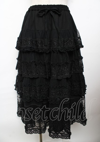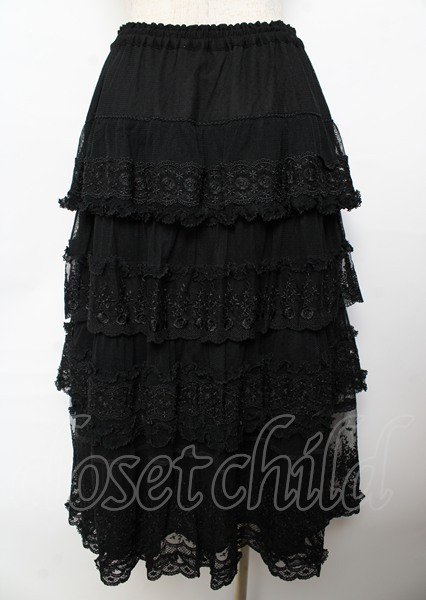 PINK HOUSE / ドットチュール×オリジナルローズチュールレーススカート F 黒 Y-25-10-07-067-LO-SK-SZ-ZY