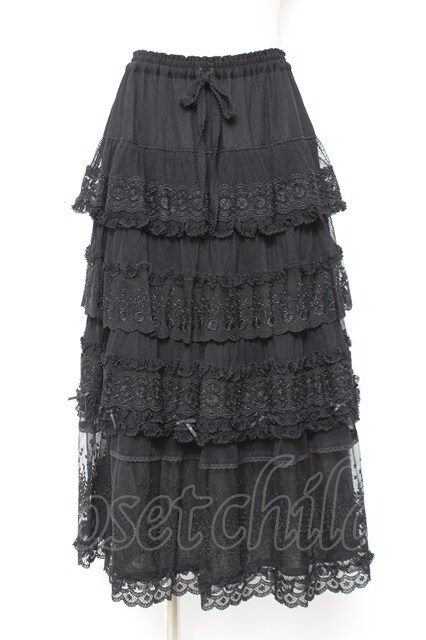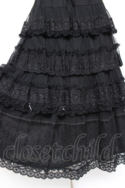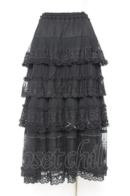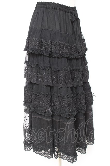 PINK HOUSE / ドットチュール×オリジナルローズチュールレーススカート F 黒 Y-25-12-20-097-LO-SK-SZ-ZY