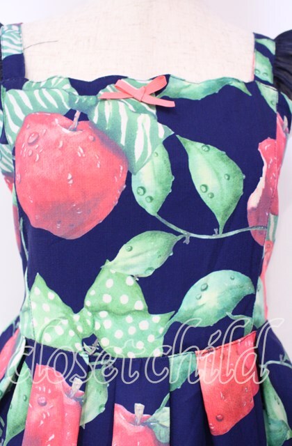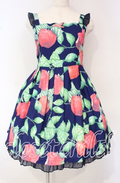 Bacio Bouquet / りんご柄ジャンパースカート M ネイビー O-25-10-06-019-EL-OP-OW-OS