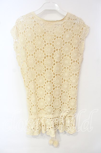 WONDERFUL WORLD / パッチワークかぎ編みベスト アイボリー O-25-10-06-055-LO-TO-IG-OS