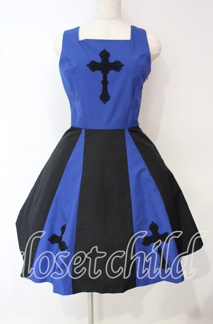 Moi-meme-Moitie / バイカラー十字架アップリケジャンパースカート 9号 ブラック×ブルー O-25-10-06-008-MO-OP-OW-OS