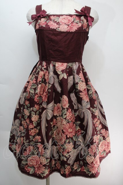 Innocent World / アニバーサリーローズハイウエストジャンパースカート ワイン S-25-10-05-040-IW-OP-AS-ZS