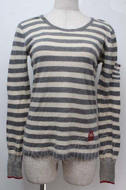 Lois CRAYON / /ボーダーニット グレーxオフ S-25-10-06-1007-LO-TO-AS-ZS