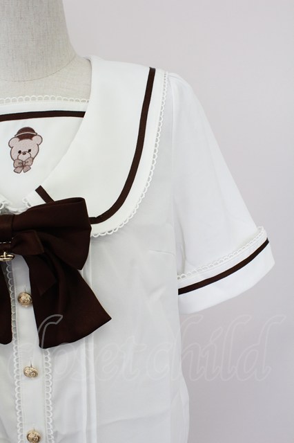 Amavel / Twinkle Bears セーラーブラウス 白Xブラウン T-25-10-09-001-CA-BL-SA-ZT [2100060000040588-T-25-10-09-001-CA-BL-SA-ZT]