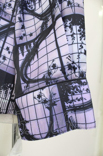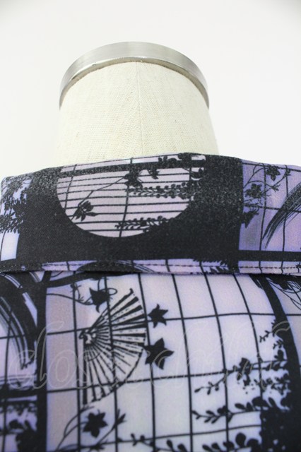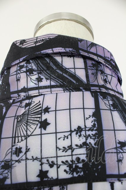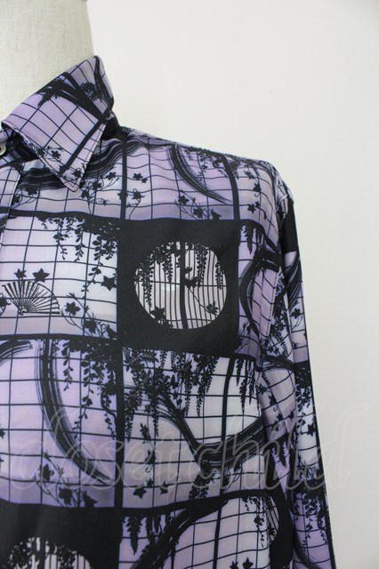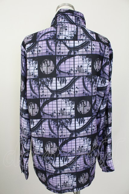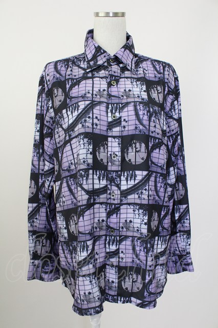 axes femme / 影絵柄プリントシャツ パープルX黒 T-25-10-09-007-AX-BL-SA-ZT
