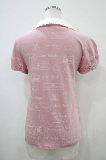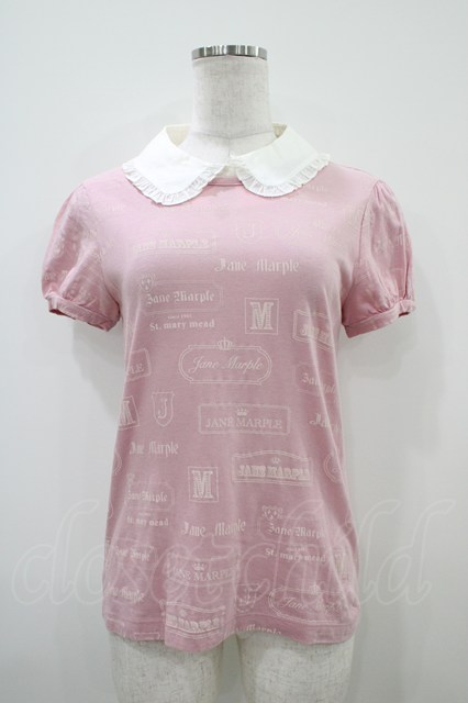 Jane Marple / ロゴプリントのスペアカラー付きTシャツ ピンク H-25-10-14-1046-JM-TO-KB-ZH