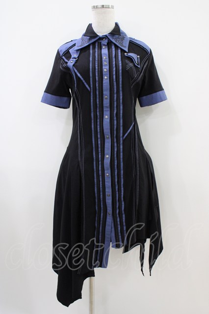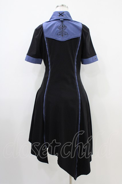 Rozen Kavalier / 刺繍襟配色アシメシャツワンピース 黒×青 H-25-10-14-1027-OO-OP-KB-ZH
