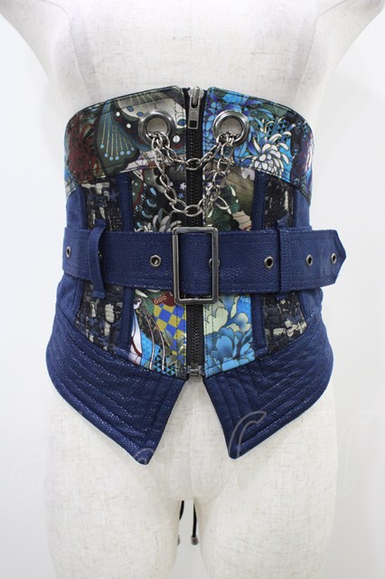 Qutie Frash / 和柄ベルトコルセット 青 H-25-10-14-1032-QU-TO-KB-ZH [2100030000075050-H-25-10-14-1032-QU-TO-KB-ZH]