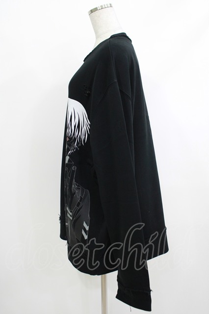 QOOZA / 東京喰種×QOOZA金木研 ダメージスウェット ブラック H-25-10-13-1025-PU-TO-KB-ZH