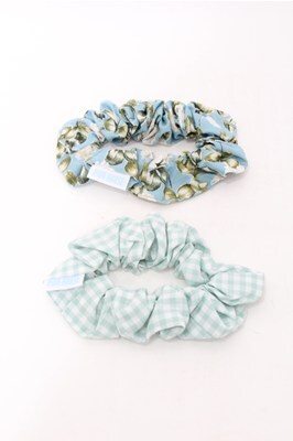 PINK HOUSE / White Clover柄&ギンガムチェックシュシュ サックスxミント S-25-10-08-015-LO-AC-HR-ZS