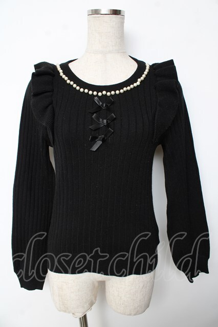 Ank Rouge / パールフリルニット M 黒 Y-25-10-10-074-CA-TO-SZ-ZY