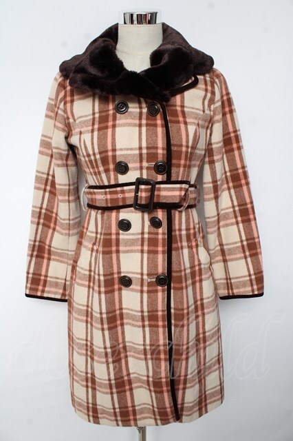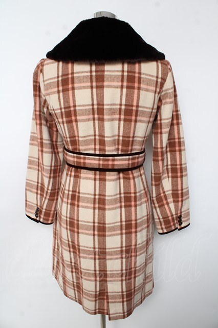 an another angelus / ファーチェックコート ブラウン Y-25-10-10-150-CA-CO-SZ-ZY