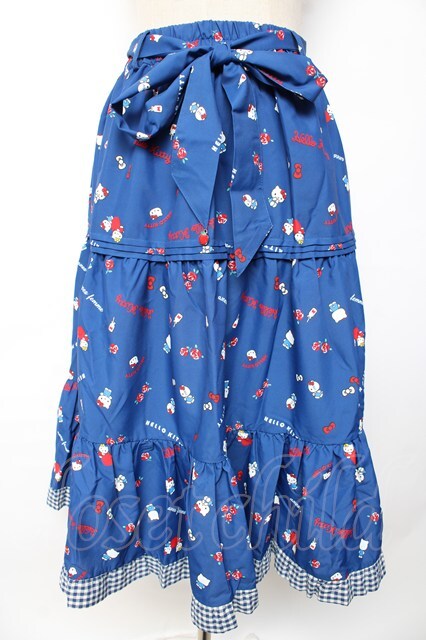 axes femme / ハローキティプリントスカート 青 Y-25-10-10-159-AX-SK-SZ-ZY