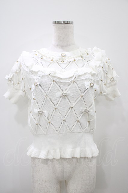 LIZ LISA / メニービジューリボンダイヤニットトップス Free ホワイト H-25-10-15-057-LO-TO-NS-ZH [2100030000074964-H-25-10-15-057-LO-TO-NS-ZH]