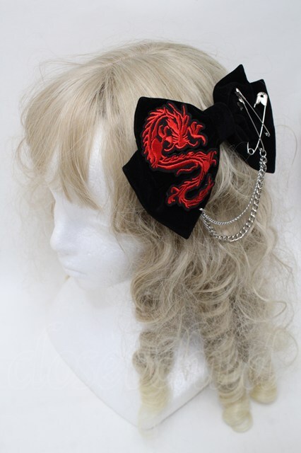 GOTH / ドラゴン刺繍リボンクリップ 黒 S-25-10-09-007-GO-AC-HR-ZS [2100020000032068-S-25-10-09-007-GO-AC-HR-ZS]