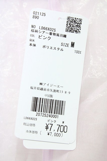 axes femme kawaii / 桜柄シアー着物風羽織 M ピンク T-25-10-10-013-AX-TO-SA-ZT