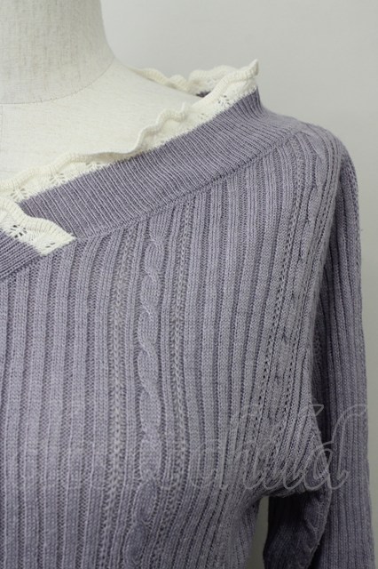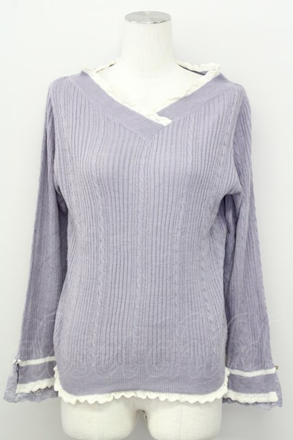 axes femme / バイカラーVネックニットプルオーバー M ラベンダー T-25-10-10-015-AX-TO-SA-ZT
