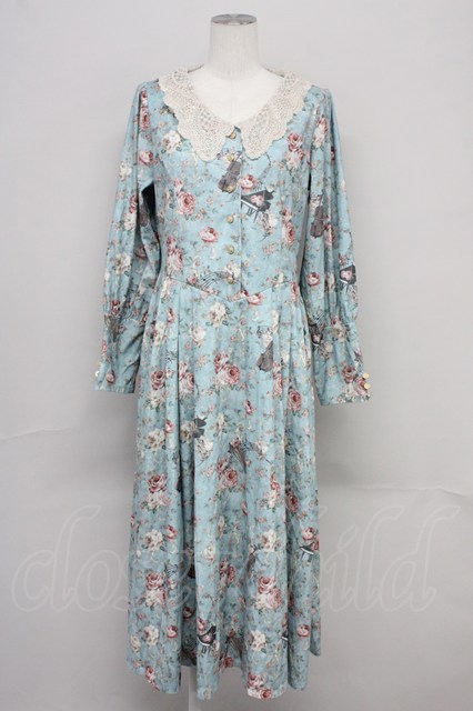 axes femme / 音楽と薔薇柄ドレス風ワンピース M グリーン T-25-10-10-026-AX-OP-SA-ZT