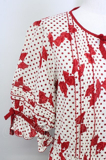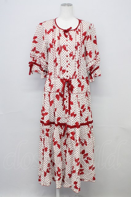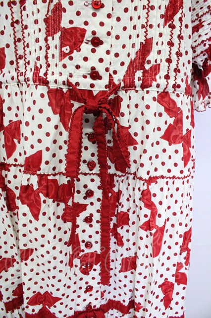 PINK HOUSE / 水玉りぼんプリントワンピース レッド T-25-10-10-033-LO-OP-SA-ZT [2100060000038172-T-25-10-10-033-LO-OP-SA-ZT]