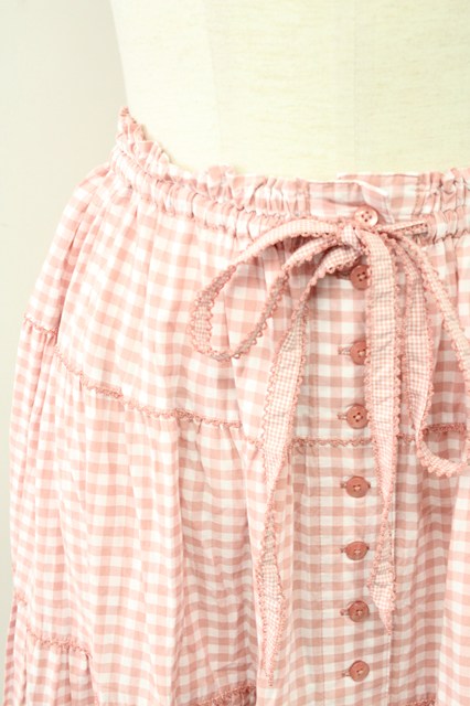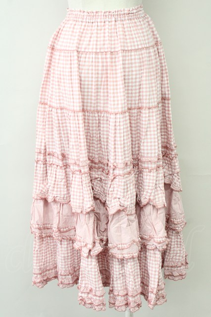 PINK HOUSE / ギンガムチェックパッチワークフリルスカート ピンク T-25-10-10-042-LO-SK-SA-ZT