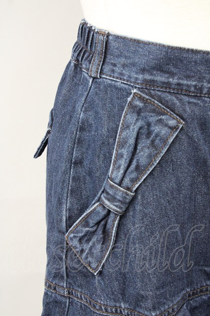 axes femme / リボン×プリーツデニムスカート インディゴ T-25-10-10-047-AX-SK-SA-ZT