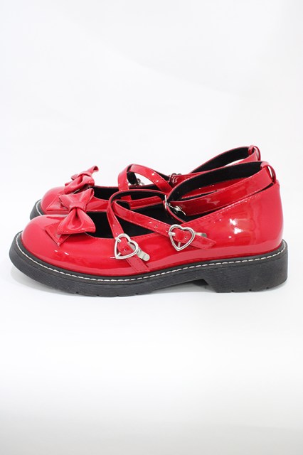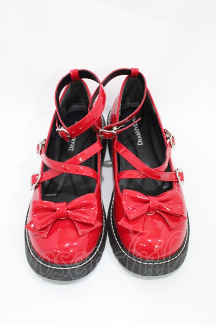 DearMyLove / クロスベルトリボンローヒール姫パンプス 24.0cm レッドエナメル H-25-10-16-003-EL-SH-NS-ZH