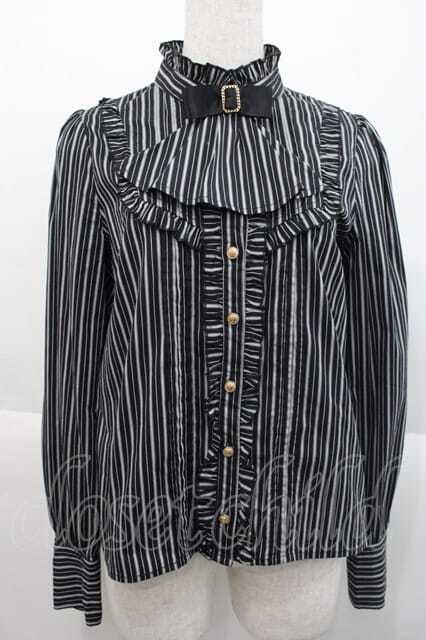 Amavel / ストライプブラウス 黒X白 I-25-10-10-007-CA-BL-SA-ZI [2100060000043291-I-25-10-10-007-CA-BL-SA-ZI]