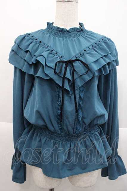 axes femme / ハイネックはしごレーストップス 青X黒 I-25-10-10-009-AX-TO-SA-ZI