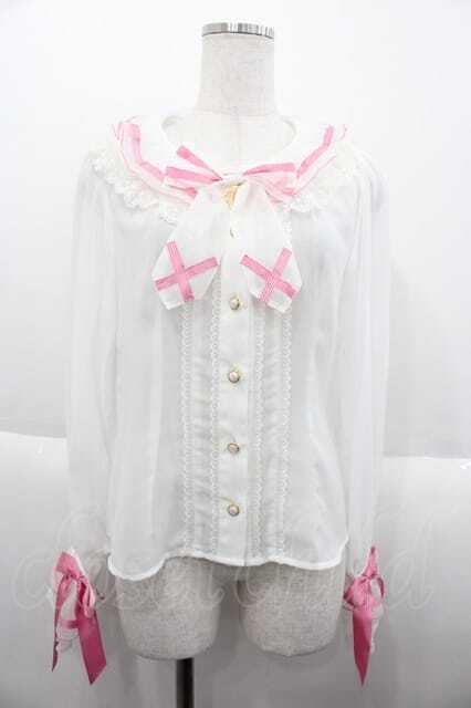 BABY,THE STARS SHINE BRIGHT / Ruban le Lien a la modeブラウス 白Xピンク I-25-10-10-011-BA-BL-SA-ZI