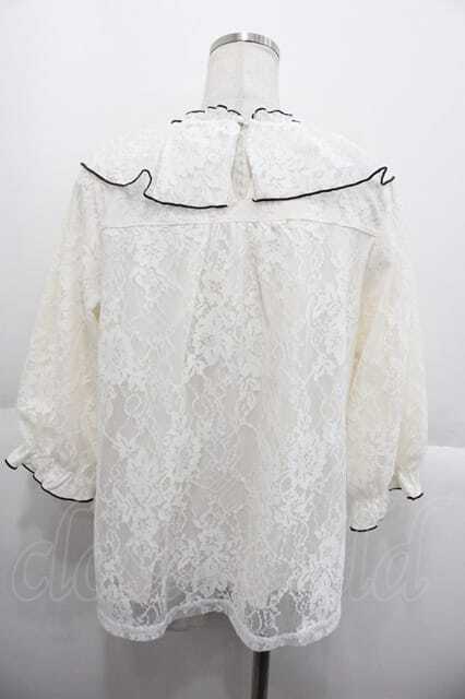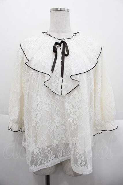axes femme / レースハイネックトップス 白Xブラウン I-25-10-10-020-AX-TO-SA-ZI