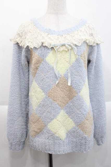 LIZ LISA / レース&アーガイルボアトップス サックスXブラウンXイエロー I-25-10-10-021-LO-TO-SA-ZI