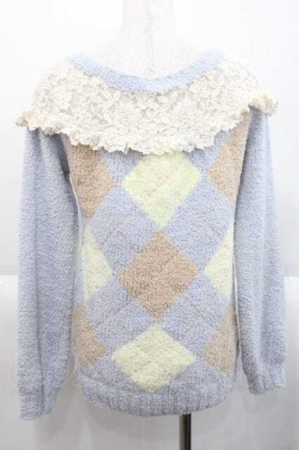LIZ LISA / レース&アーガイルボアトップス サックスXブラウンXイエロー I-25-10-10-021-LO-TO-SA-ZI [2100060000042760-I-25-10-10-021-LO-TO-SA-ZI]