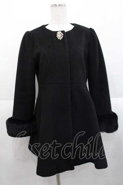 evelyn / ビジューブローチ付きコート 黒Xシルバー I-25-10-10-035-LO-CO-SA-ZI [2100060000043140-I-25-10-10-035-LO-CO-SA-ZI]
