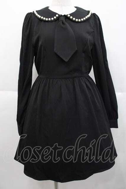 Ank Rouge / パール襟タイ付きワンピース 黒X白 I-25-10-10-071-CA-OP-SA-ZI