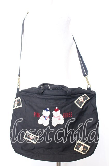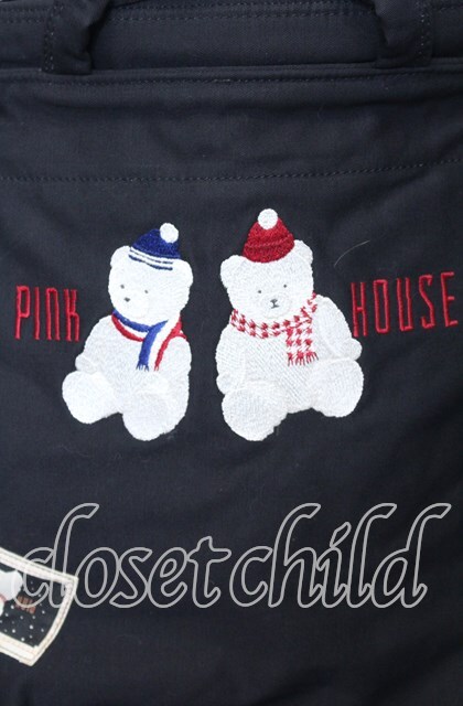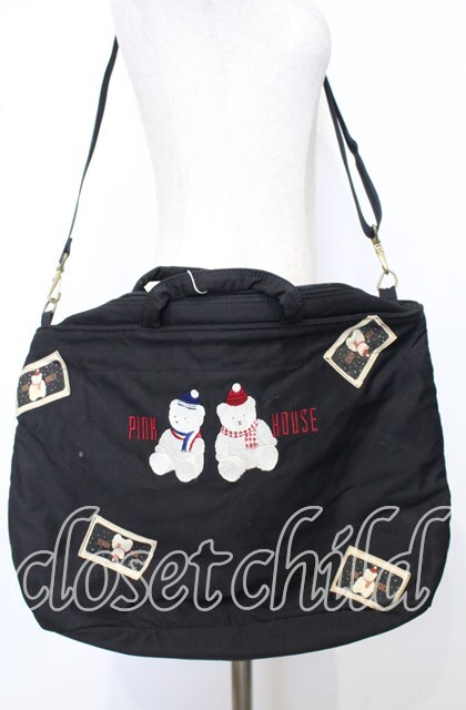 PINK HOUSE / 雪だるまくま刺繍バッグ クロ O-25-10-10-004-LO-BG-IG-OS