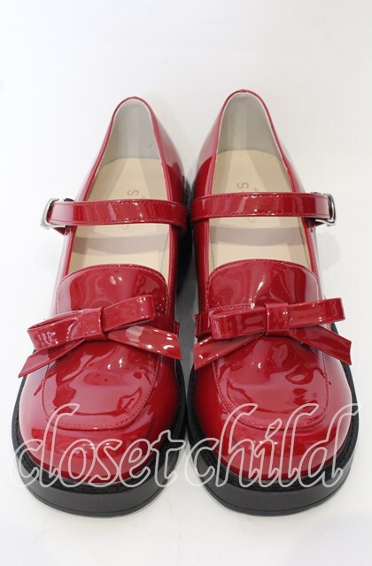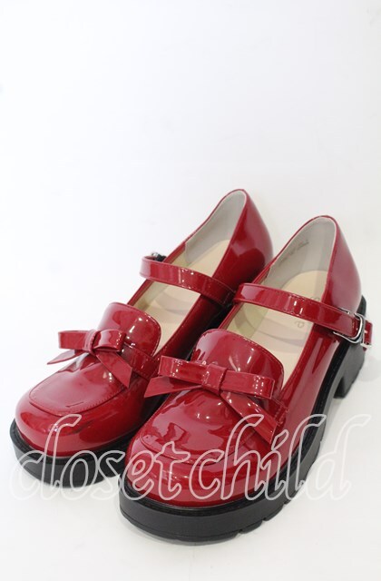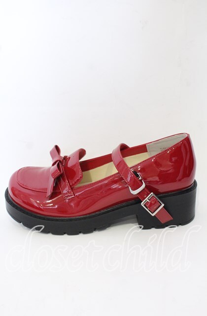 axes femme / リボン付ローファーパンプス L アカ O-25-10-10-014-AX-SH-IG-OS